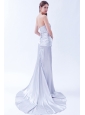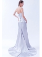 Lilac Column Strapless Beading Prom Dress Elastic Wove Satin Beading Brush Train