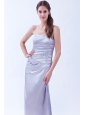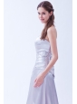 Lilac Column Strapless Beading Prom Dress Elastic Wove Satin Beading  Brush Train