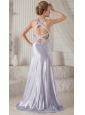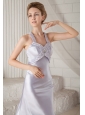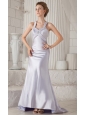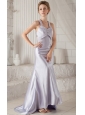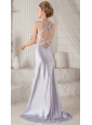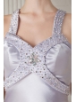 Lilac Column Straps Brush Train Satin Beading Prom / Celebrity Dress