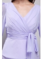 Home >  Special Occasion Dresses >  Mother of the Bride Dresses > Lilac Column V-neck Knee-length Chiffon Ruch Mother of the Bride Dress