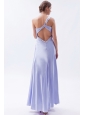 Lilac Empire One Shoulder Prom Dress Chiffon Beading Ankle-length