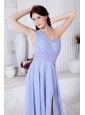 Lilac Empire One Shoulder Prom / Evening Dress Watteau Train Chiffon Beading