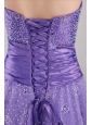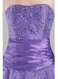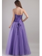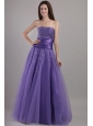 Lilac Empire Strapless Floor-length Tulle Beading Prom / Party Dress