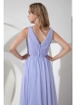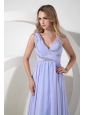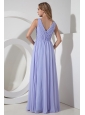 Lilac Empire V-neck Beading Prom Dress Floor-length Chiffon