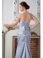Lilac Evening Dress Column Strapless Beading and Ruch Brush Train Satin