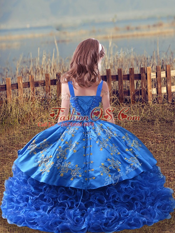Lilac Girls Pageant Dresses Fabric With Rolling Flowers Sweep Train Sleeveless Embroidery