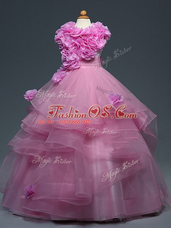 Home >  Special Occasion Dresses >  New Style Little Girl Pageant Dresses > Lilac Lace Up High-neck Ruffles and Hand Made Flower Little Girl Pageant Gowns Tulle Sleeveless