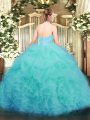 Lilac Lace Up Quinceanera Gowns Beading and Ruffles Sleeveless Floor Length