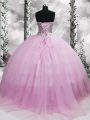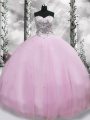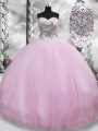 Lilac Lace Up Sweet 16 Quinceanera Dress Beading Sleeveless Brush Train
