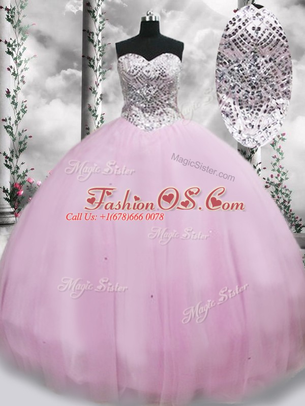 Home >  Quinceanera Dresses >  Fast Delivery Quinceanera Dresses > Lilac Lace Up Sweet 16 Quinceanera Dress Beading Sleeveless Brush Train