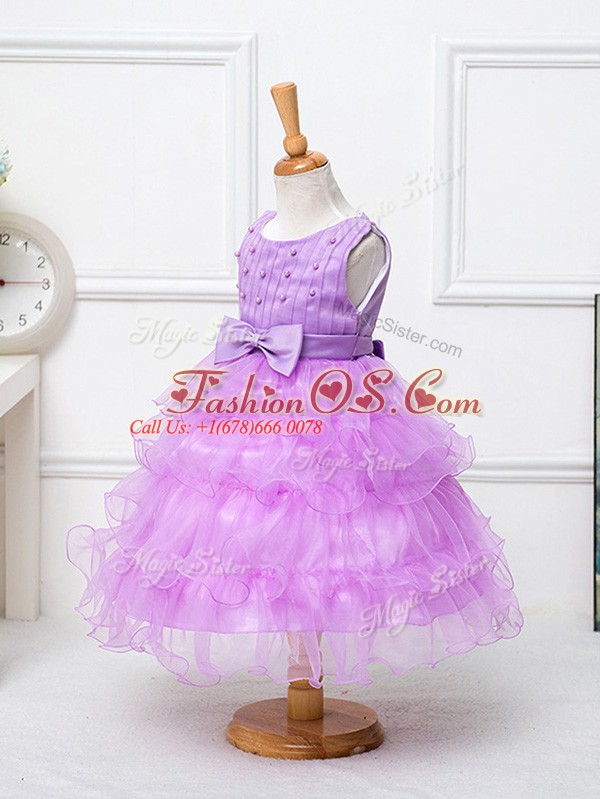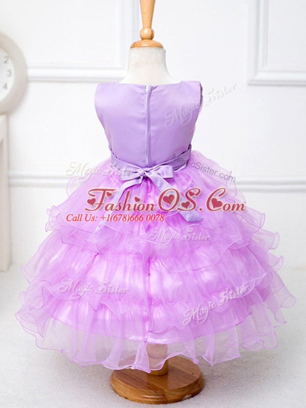 Lilac Little Girls Pageant Dress Wedding Party with Ruffled Layers and Bowknot Scoop Sleeveless Zipper