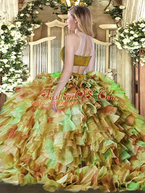 Lilac Quince Ball Gowns Military Ball and Sweet 16 and Quinceanera with Beading and Ruffles High-neck Sleeveless Backless