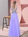 Lilac Sleeveless Floor Length Beading Zipper Prom Dress