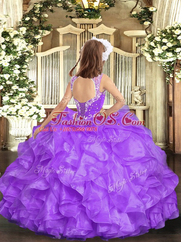 Home >  Special Occasion Dresses >  Beautiful Kids Pageant Dresses > Lilac Sleeveless Organza Lace Up Custom Made Pageant Dress for Party and Quinceanera