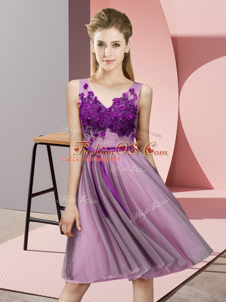 Lilac Sleeveless Tulle Lace Up Dama Dress for Wedding Party