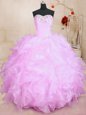 Lilac Sweetheart Lace Up Beading and Ruffles 15th Birthday Dress Sleeveless