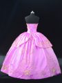 Lilac Sweetheart Neckline Embroidery Quince Ball Gowns Sleeveless Lace Up