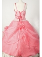 Little Girl Pageant Dresses With Beading Hand Made Flowers and Coral Red