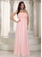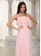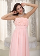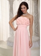 Long Baby Pink Empire Chiffon Hand Made Flowers Dama Dress