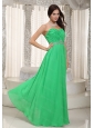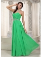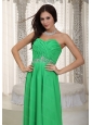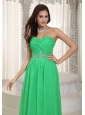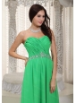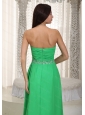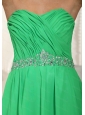 Long Green Empire Sweetheart Ruch and Beading Dama Dress