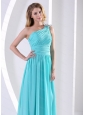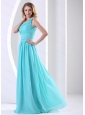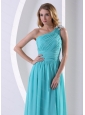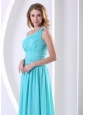 Home >  Special Occasion Dresses >  Dama Dresses for Quinceanera > Long One Shoulder Ruched Bodice Aqua Blue Dama Dress For Quinceanera