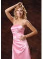 Long Rose Pink Elastic Woven Satin Strapless Dama Dresses