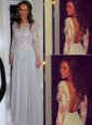 Long Sleeves Floor Length Backless Mother Of The Bride Dress Grey and In for Prom and Party with Appliques