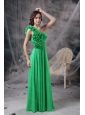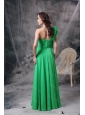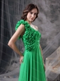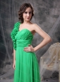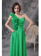 Long Spring Green One Shoudler Chiffon Hand Made Flowers Dama Dress