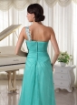 Long Turquoise One Shoulder Appliques Dama Dress On Sale