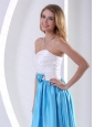 Long White and Aqua Blue Sweetheart Ruch Dama Dress 2013