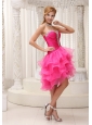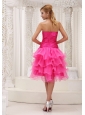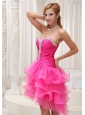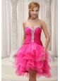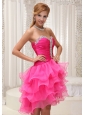 This is a beautiful gown and would make a lovely addition to anyone's formal wardrobe! This flirt dress features a beaded sweetheart neckline with flowery crystal accenting on the middle of the fitted ruched bodice. Layers of ruffles complete the cute short skirt and a standingout look. The back is finished with zipper. This dress is available in the colors shown on the color palette.