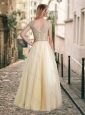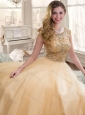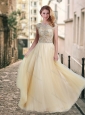 Lovely A Line Beaded Bodice Scoop Prom Dress in Champagne