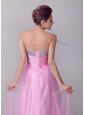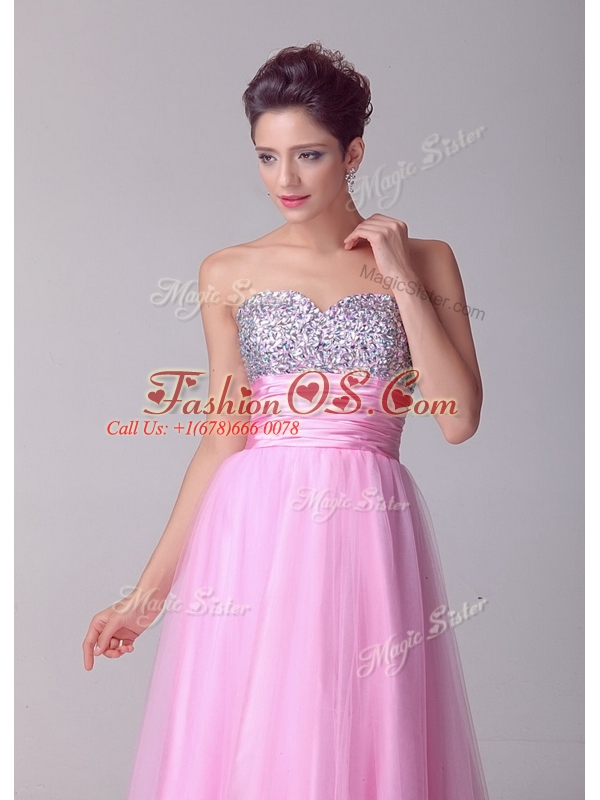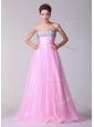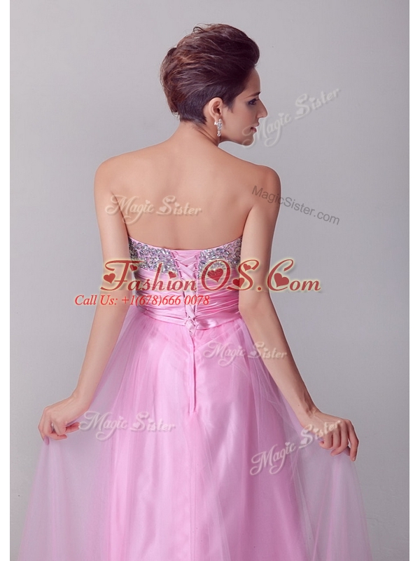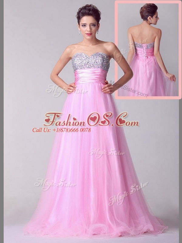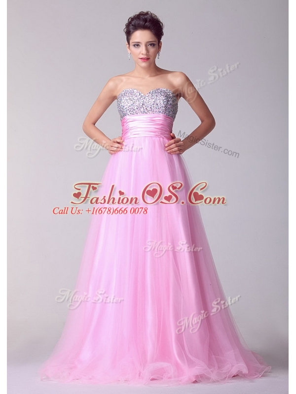 Lovely A Line Brush Train Rose Pink Celebrity Dresses with Beading for Spring