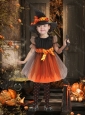 Lovely A Line Scoop Bowknot Little Girl Pageant Dress in Orange Red and Black