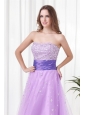 Lovely A-line Strapless Tulle Lilac Beading Prom Dress with Lace Up