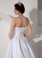 Lovely A-line Strapless Wedding Dress Taffeta Beading and Ruch Brush Train