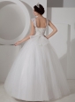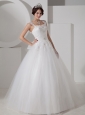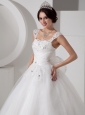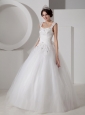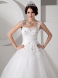 Home >  Wedding Dresses >  Ball Gown Wedding Dresses > Lovely A-line Straps Tulle Wedding Dress Beading and Appliques Floor-length