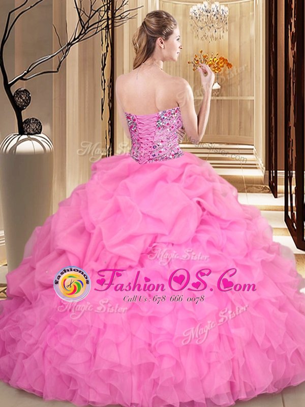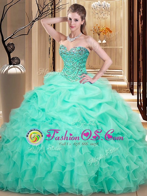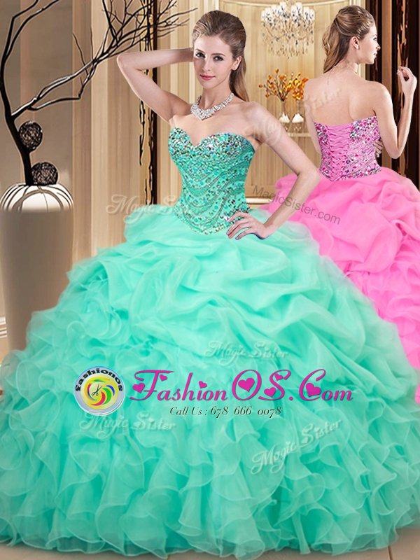 Lovely Apple Green Sweetheart Neckline Beading and Ruffles and Pick Ups Quince Ball Gowns Sleeveless Lace Up