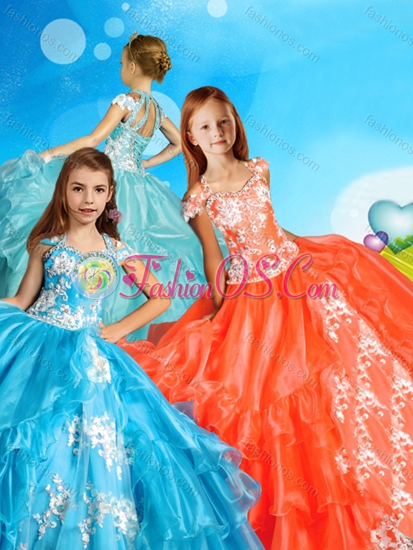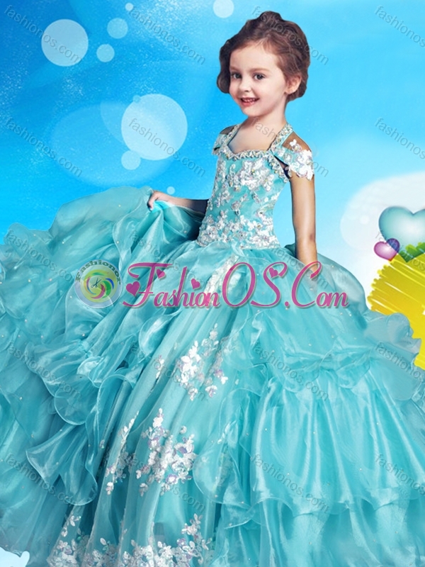Lovely Applique and Beaded Little Girl Pageant Dress with Cap Sleeves