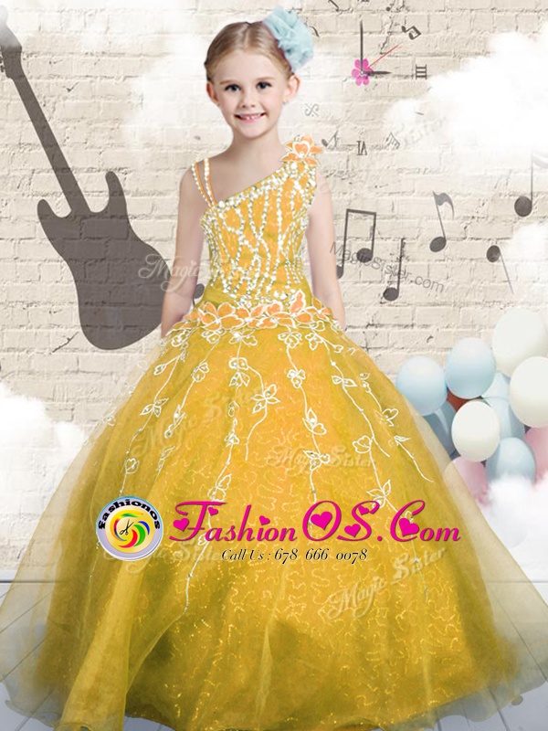 Home >  Special Occasion Dresses >  Mini Quinceanera Dresses > Lovely Appliques Child Pageant Dress Orange Lace Up Sleeveless Floor Length