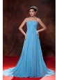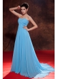 Home >  Evening Dresses > Lovely Aqua Blue Empire Strapless Evening Dress Court Train Chiffon Ruch