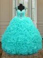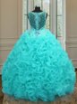 Lovely Aqua Blue Straps Zipper Beading and Ruffles Sweet 16 Quinceanera Dress Sleeveless
