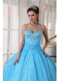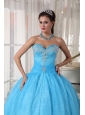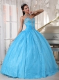 Home >  Quinceanera Dresses >  Discount Quinceanera Dresses > Lovely Baby Blue Quinceanera Dress Sweetheart Taffeta and Organza Appliques Ball Gown