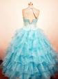 Home >  Special Occasion Dresses >  Little Girl Pageant Dresses > Lovely Ball Gown Little Girl Pageant Dress Ruffled Layered Halter With Floor-Length Aqua Blue Organza