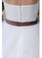 Simply gorgeous. This princess style wedding dress catches your eyes by the first sight. It features a strapless bodice with dainty ruchings and a lovely sash in contrasting color. A delicate bowknot embellishes the waist and contours your slim curve. The layered puffy skirt flows to the floor to form a chapel train, which contributes to the elegant look. The hidden zipper completes this fabulous design.