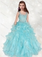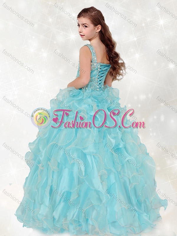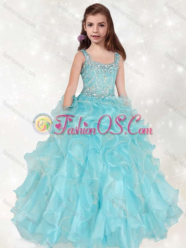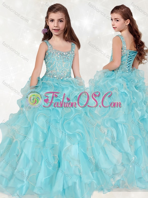 Lovely Beaded and Ruffled Big Puffy Little Girl Pageant Dress with Straps