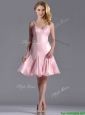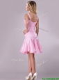 Lovely Beaded Bust Straps Short Dama Dresses for Quinceanera in Baby Pink