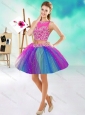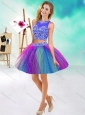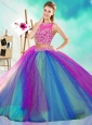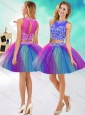 Lovely Beaded Scoop Tulle New Arrival Quinceanera Dress in Rainbow Colored