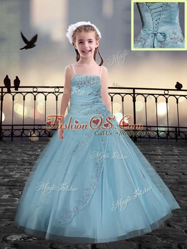 Lovely Beading New Style Little Girl Pageant Dresses  in Light Blue