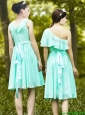 Lovely Belted and Ruched Short Prom Dresses in Apple Green